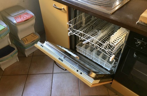 > Fully equipped independent kitchen with fridge and freezer, cooking area, dishwasher, oven and ceiling fan. Everything you need to cook independently is present;