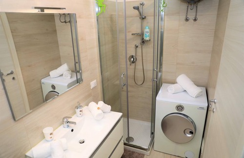 Equipped with kitchen, dining table with armchairs, sofa bed, complete bathroom with shower, air conditioning, smart TV and washing machine.