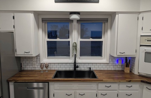 Discover the beauty of Greentown from this modern 2-bedroom house. The bedrooms feature a pleasant memory foam queen bed and a nice full bed. Enjoy the awesome living room with a cozy sectional couch with electric footrests. With a 48" screen smart TV. The bathroom is equipped with a hair dryer and a walk in shower shower. The kitchen is fully stocked and equipped with cooking utensils, pans, pots, and dishes. Other nice amenities include WiFi, iron, heating, AC, and a large copacity washing machine & dryer . We look forward to welcoming you to our place.