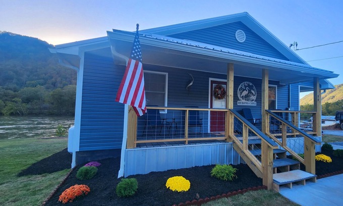 Herons Cove is located on the New River in Sandstone, WV. This beautiful home offers a modern, stylish design with spacious living areas, high-end finishes, and breathtaking views. Perfect for those seeking both relaxation and adventure, the property has convenient access to outdoor activities while providing a serene retreat with all the comforts of home. Whether you're unwinding on the private deck or exploring nearby attractions, this delightful haven promises an unforgettable stay.