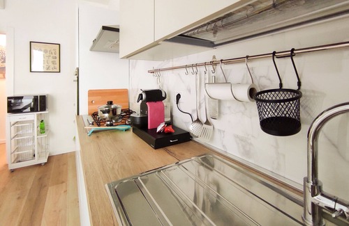 As you settle into this 1-bedroom, 1-bathroom rental, you'll find air conditioning and a desk. Connect to the free WiFi, or get cozy in front of the cable/satellite TV. Bathroom amenities include a hair dryer, a bidet, and towels. Prepare a home-cooked meal in the kitchen, complete with an oven, a stovetop, and a refrigerator, as well as a coffee maker, a microwave, and cookware. And you won't have to pack extra clothes, because you'll have a washer and dryer, too. Other amenities include bed sheets, an ironing board, heating, and a dining table.
