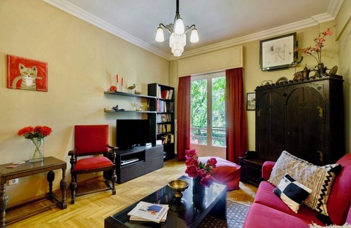 Situated within the heart of Kolonaki, the most exclusive residential quarter of Athens, this comfortable 86 m2 apartment, is perfect for a long or short stay in Athens. The location is very convenient as it is close to the metro and also a short walking distance to many attractions. Although the apartment is in the centre of Athens, it is very quiet. It is decorated with the owner's exclusive artwork, and has everything you will need to feel at home. The kitchen is more that well equipped for preparing food, alternatively there are plenty of restaurants, bars and cafes around.