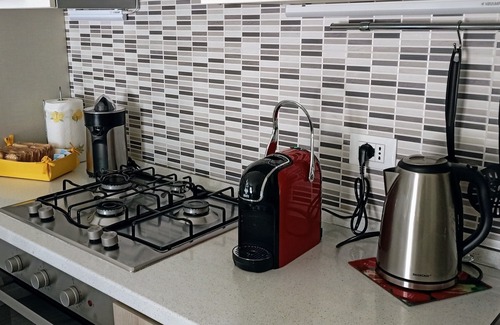 Washing machine, iron, camping bed up to 4 years available. high chair for children and in the kitchen of basic goods