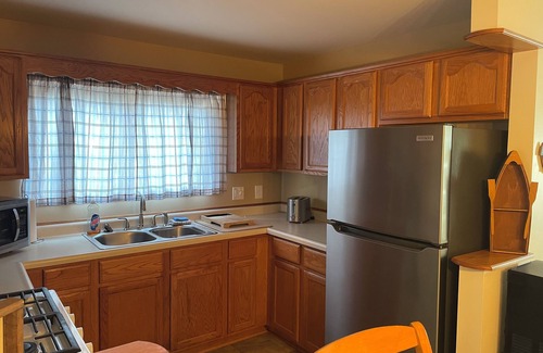 Delavan is waiting for you at this brilliant 2-bedroom cottage. With 1 queen bed, 2 bunk beds, a cozy living room with a sofa bed, and a bathroom with a bathtub and hair dryer, this awesome retreat has everything you need for a relaxing stay. Large garage converted into a game room, and fenced yard with firepit. Enjoy the enchanting surroundings and make unforgettable memories with your loved ones. We look forward to welcoming you to our place. Side Note-This home is not located on the water, it is about 3-4 blocks away from our private community beach/park.