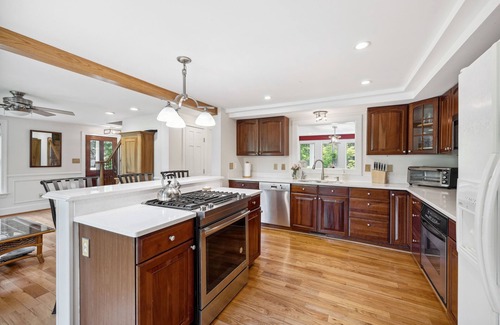 The Delightful Country Home in the Heart of Virginia Wine Country is an ideal wedding accommodation, offering spacious and sunlit surroundings to create memorable moments. Nestled on 12 acres close to local wineries, breweries, and wedding venues, this charming property combines serenity with convenience for a perfect wedding getaway.