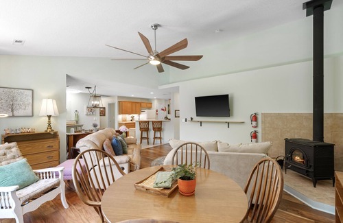The cottage is designed with both comfort and convenience in mind, featuring three beautifully appointed bedrooms with luxurious Zinus Green Tea foam mattresses and high-quality linens for a restful night’s sleep. Enjoy entertaining guests with a fully equipped kitchen that includes modern appliances and a cozy breakfast nook. Gather around the indoor fire stove or outdoor fire pit for intimate moments under the stars. For recreational fun, take advantage of the dedicated game room, complete with board games and an arcade machine, ensuring endless entertainment for you and your loved ones.
