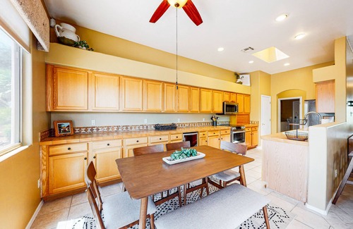 Pack your bags and reward yourself with a memorable stay at this unique and delightful ground-floor home near The Preserve Community Park in Marana, AZ! This beautiful home away from home is ideal for outdoor enthusiasts, families with children, groups, and couples alike.