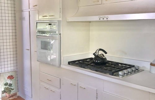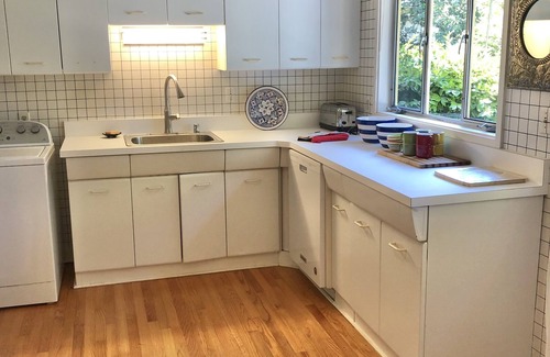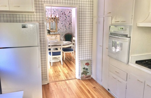 Fully-equipped, bright kitchen has an oven, gas stove, refrigerator, dishwasher, lots of counter space and both a large picture window and a door leading to the landscaped back yard. The kitchen is well-stocked with dishes, utensils, glassware, cookware and serve-ware for cooking and serving meals. I can also provide recommendations for dining or carry-out at our many fabulous local restaurants if you prefer not to cook.