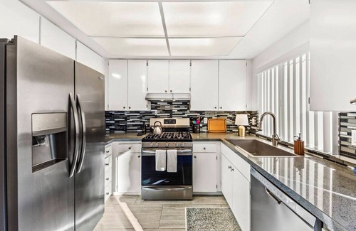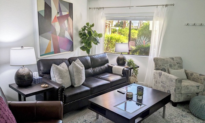 Stay comfortably in Palm Springs at this 2-bedroom townhome. The bedrooms feature a brilliant king bed and a phenomenal queen bed. Enjoy the charming AC, iron, and hair dryer amenities provided. With 2 bathrooms equipped with hair dryers, your stay will be nothing short of phenomenal. We look forward to welcoming you to our place.