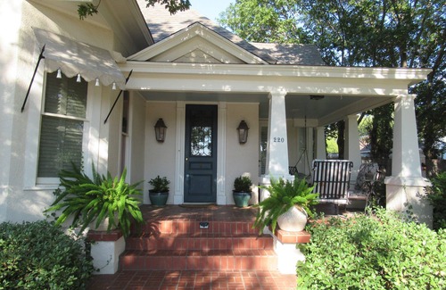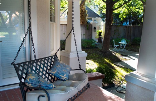 The manicured grounds, tree covered lot, large patios, phenomenal architecture and undeniable comfort brings peace and elegance to each room in the home. A music system extends to all of the patios and outdoor areas which brings life to the entire property and/or adds to the calm which accompanies the constant breeze on the front porch. The bedrooms provide a king size bed and queen size bed, plus two comfortable roll away beds. Biking or walking along the river walk to the nearby restaurants, music venues, art exhibits and shopping in our Historic Downtown makes for a one of a kind vacation. Feeling otherwise.....let Instacart deliver groceries and BBQ for friends and family while enjoying the shaded patios and covered porches.