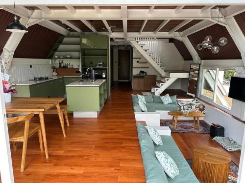 Based on the information received from our partner, the DELIMA A Frame House has not specified they are wheelchair accessible. Likewise, there is not an elevator specified as being available at the property. Specific accessibility details may be addressed in the property details section of this page.