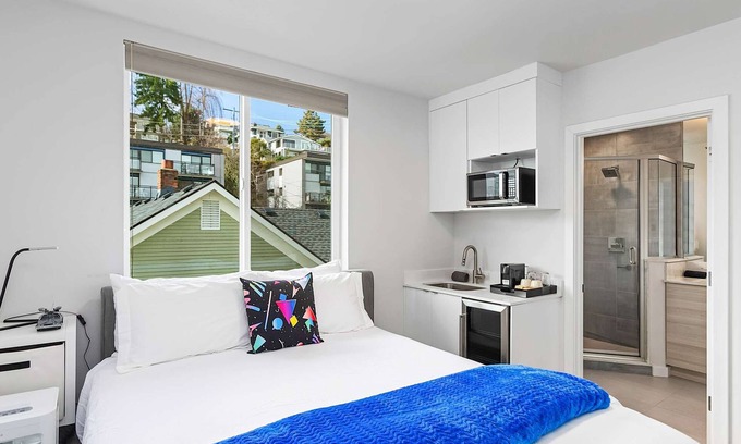 Located in Queen Anne, one of Seattle's most picturesque neighborhoods, you're just a short walk away from beautiful parks, iconic landmarks, and a variety of shops and restaurants. The area offers stunning views of the Seattle skyline, making it the perfect base for your adventures in the city.