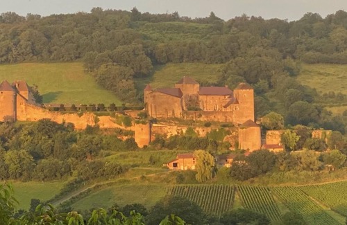 Beautiful 19th century winegrower's house steeped in history (old "cuvage") carefully renovated located in the heart of the Clun countryside in the heart of the Val Lamartinien vineyard in reference to the famous French poet and writer, illustrious guest of the territory, who once gave his name to this magnificent valley of the Mâconnais vineyards. Ultra privileged situation 9 km from Cluny and 17 km from Mâcon on the wine route, the circuit of Romanesque churches (more than 100 churches and chapels to discover) and the green way. Charming, very quiet residential hamlet nestled on the hillside in a magnificent, unspoiled rural and natural setting, between vineyards, meadows and forests, on the borders of the Mâconnais and Haut Beaujolais mountains. Pleasant south-west exposure. Very comfortable cottage. Warm "contemporary country" cachet. Cozy and very spacious. Very charming. Complete quality equipment (interior and exterior). Triple terrace, one large in gravel, one covered and one on the balcony. Large and pleasant, well-kept and flowered garden with children's games (hut, swing & ping-pong table). Splendid panorama over the surrounding countryside and the sumptuous medieval castle-fortress of Berzé-le-Châtel, a heritage jewel of Burgundy. Exceptional view and landscape. Ideal for a relaxing, comfortable stay, out of time. Composition of the gîte: independent duplex house (ground floor + 1st floor). Wireless. Electric heating + fireplace (wood included). Equipped kitchen, living room (TV with orange package / more than 150 channels). 3 bedrooms on the 1st floor (1 bed 160x200cm / 2 twin beds 80x190cm / 1 bed 140x190cm). Two bathrooms, one on each floor (bath / shower-WC). Independent WC on the ground floor. Triple terrace (one sheltered + one on the balcony + a large one in gravel). Garden (children's hut + swing + ping-pong table). Private parking (3 places). Shops at 2 km. Greenway at 500m. Body of water 10 km. Swimming pool 7 km. Mâcon Loché TGV station 20 km.