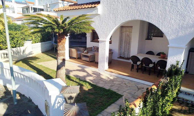 Fantastic Mediterranean house (120m.) Decorated with a ratan style. The plot (300m.) Is individual and is located 100 meters from the beach. The house has free parking. Very good climate zone. It has a natural garden with trees, plants and a large barbecue. The villa is part of the Serramar urbanization where we can practice sports and leisure (pool, paddle, football and tennis) in the community area.