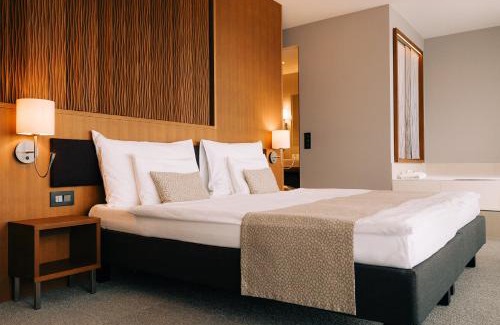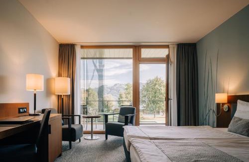 Deltapark Vitalresort is a new spa and wellness resort at the shores of Lake Thun in the Bernese Oberland. It offers 3 restaurants, a 6.6 ft² spa area, and conference facilities. Free WiFi is provided. The Vitalresort Deltapark has rooms in 3 separate buildings and offering different comfort levels. The rooms in the main building offer 4-star superior standard with balconies . All rooms are very quiet and feature views to the garden, the lake or the mountains. Guests of Deltapark Vitalresort can get active in the fitness area or relax in the large hotel park.