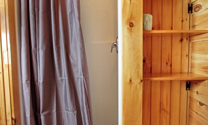 Cabin 61 is private and peaceful and is located in the back of the campground with plenty of parking. There is one bedroom with 2 bunk beds. The bunk beds have 1 full bed and 3 single mattresses, a living area with 1 Sofa bed (this does fold out into a double bed if needed),We will provide fresh sheets on the bed, however we will not provide pillows and blankets, or towels. sleeps a maximum of 5 adults, a SMART TV, Kitchenette w/ Microwave, Stove top, Mini-fridge, Bathroom w/ Shower, Coffee-Maker, Toaster, Pots and pans, Utensils, Heat/AC, ceiling fan, Fire Ring, Picnic Table. Check in any time after 3 pm.