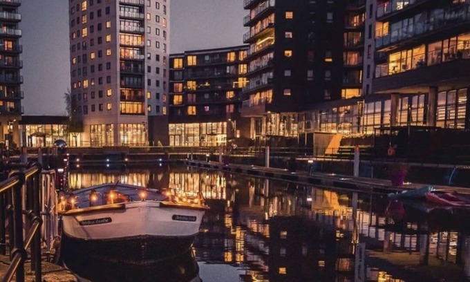 Deluxe apartment offering balcony views facing the canal of Leeds Dock, a crystal UHD 55” Samsung Smart TV, luxury gold interior design and much more to ensure a guaranteed luxury stay.