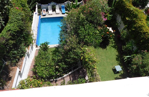Cuernavaca has arguably the best climate in the world, 75 degrees mean temperature (22 C.) At 5400 feet altitudes, there is no need for heat nor air-conditioning. It has escaped the violence of other parts of the country. Violence involves competition among rival drug lords. Tourists are not the targets nor the victims and the city is far safer for tourists than most US cities of its size. The villa is on a gated street inside a walled compound. There has not been a single break-in on the street in over 25 years. There is safe on-street parking but taxis are so inexpensive that a car is not needed. Average taxi ride across town is 50 pesos. There are direct buses to and from the Mexico City airport every 40 minutes and buses to the capital every 15 minutes. It is 30 minutes from the largest flower garden in the world and three hours to Acapulco.
