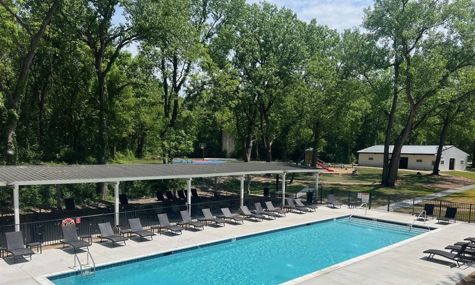 No, this Yorkville cottage does not have a swimming pool. Check the Facility Overview section for details about the pool and other available facilities.