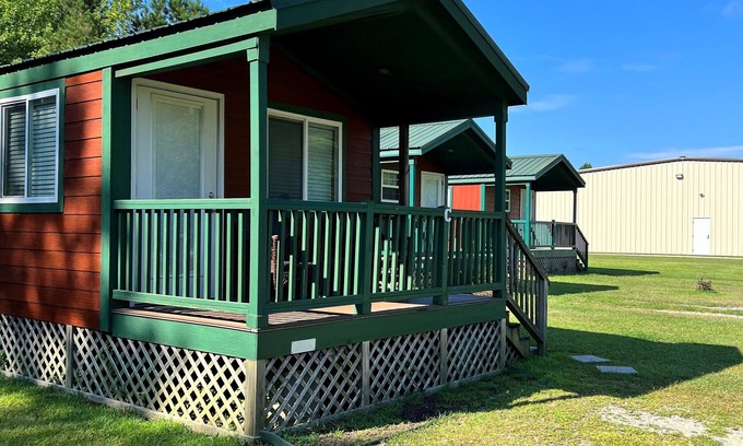 Conveniently located on Blount's Creek and near local attractions and amenities, Cotton Patch Landing provides easy access to dining, shopping, and recreational activities. Whether you're looking for a peaceful retreat or an action-packed adventure, our Deluxe Creekside Cabin offers the perfect home base for your stay.
