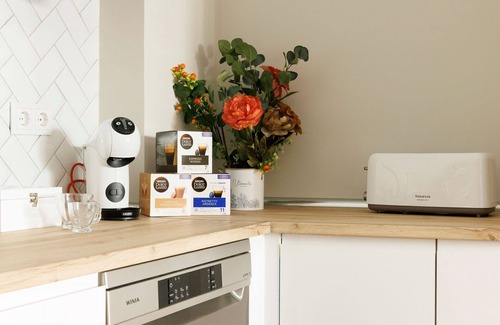 The kitchen is equipped with an oven. Bathroom amenities include a hair dryer and towels. And because there's a washing machine, you can go a bit lighter on your packing.