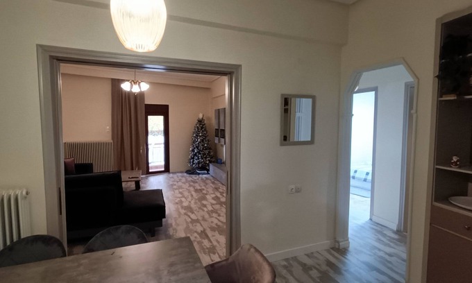 Relax with your entire family in a truly elegant and spacious apartment in the heart of Kalabaka. The apartment offers modern interior design, a 65" 4K OLED TV, free fast WIFI and a plethora of home appliances.