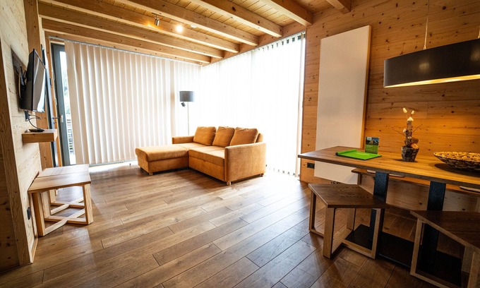 Treat yourself to your own personal wellness break in the Rhön biosphere reserve, directly on the Wasserkuppe, Hesse's highest mountain! Thanks to a private sauna and your own outdoor whirlpool, you can enjoy the highest level of comfort on the Wasserkuppe in the deluxe house - at any time of year. Our houses are designed for an occupancy of 2 (max. 6) persons.