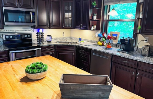 Welcome to our luxurious 5-bedroom North Conway retreat! This spot has it all! Perfect for families and groups, our home offers a hot tub, pool table, arcade games, fire pit, wood stove, ping pong table, gym, sauna, Blackstone grill, outdoor dining area and a large backyard. Centrally located near hiking, skiing, Mount Washington, and Settlers Green Outlet Village but private and away from the crowds. Enjoy modern amenities, cozy living spaces, and high-speed Wi-Fi. Pet-friendly. Reserve today!