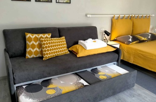 A sofa bed, air conditioning, and a desk are featured at this 1-bedroom, 1-bathroom rental. Bathroom amenities include a hair dryer, a bidet, and toilet paper. For your convenience, there's a refrigerator and a coffee maker.