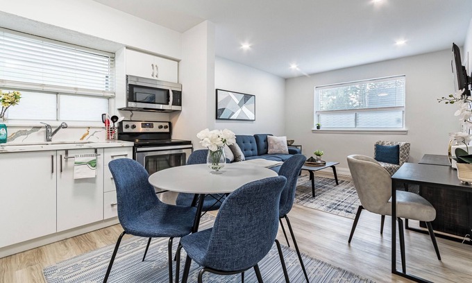 This apartment is just a short drive from the best bars, groceries, superb cafés, great dining, boutiques, and also within walking distance of the parks, lake, and Port Credit Go Train Station. This is also 7 km away from downtown Mississauga and 20 km away from downtown Toronto's CN Tower!