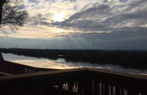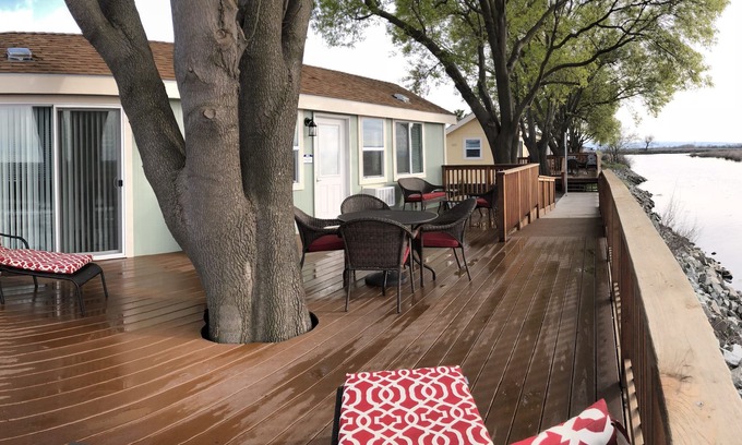 Our one of a kind Bungalows are located on the California Delta, just off the San Joaquin River. Whether you are traveling through Stockton to your next destination, on a business trip for a week, or out to enjoy to wonders the Delta has to offer our "wheelchair-friendly" Bungalow is perfectly equipped to accommodate all of your needs. Enjoy what the Delta has to offer by bringing your ski boat, access to a guest dock is within walking distance. Or, enjoy the beautiful, tranquil, sunset views of Mt. Diablo on the 600+ sq. foot deck which cantilevers over the levee.