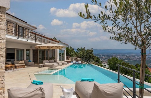 1.7 miles from Tomasevac Beach in Opric, Deluxe Villa Dana offers accommodations with access to a sauna, hot tub, and spa facilities. Guests may go for a swim in the rooftop pool. There's an outdoor fireplace and guests have access to free Wifi, free private parking, and an electric vehicle charging station. Providing access to a balcony with mountain views, the air-conditioned villa consists of 3 bedrooms. Offering a terrace with sea views, this villa also features a satellite flat-screen TV, a well-equipped kitchen with a dishwasher, an oven, and a microwave, as well as 5 bathrooms with a walk-in shower and bathrobes. There's also a seating area and a fireplace. Guests can make the most of the warm weather with the property's barbecue facilities. For guests with children, the villa provides an indoor play area, outdoor play equipment, and a baby safety gate. Skiing and windsurfing can be enjoyed nearby, while a ski equipment rental service and a ski pass sales point are also available on-site. HNK Rijeka Stadium Rujevica is 8.1 miles from Deluxe Villa Dana, while The Maritime and History Museum of the Croatian Littoral is 10 miles from the property. Rijeka Airport is 25 miles away.
