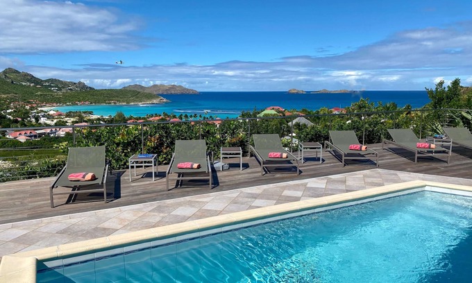 “Les Acajous” is located on the hillside of St-Jean with a panoramic view of St-Jean beach, offers peace, privacy, serenity and beauty.