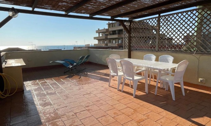 Featuring a bar, Demy house provides accommodations in Passoscuro. This beachfront property offers access to a terrace and free Wifi. The accommodation features full-day security and private check-in and check-out for guests. The air-conditioned apartment consists of 1 bedroom, a living room, a fully equipped kitchen with an oven and a coffee machine, and 1 bathroom with a bidet and a hair dryer. Guests can take in the views of the sea from the balcony, which also has outdoor furniture. There's also a seating area and a fireplace. A mini-market is available at the apartment. Guests at the apartment will be able to enjoy activities in and around Passoscuro, like bike tours. Passo Oscuro Beach is a 1-minute walk from Demy house, while Battistini Metro Station is 18 miles from the property. Fiumicino Airport is 10 miles away.