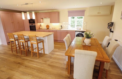 Denholme, a single-storey house, consists of a kitchen with electric oven and hob, microwave, washing machine, and dishwasher, a dining area with seating for six guests, and a sitting area with Smart TV. The bedrooms consist of a super-king-size with en-suite bathroom, double, and twin serviced by a shower room. WiFi, fuel, power, bed linen, and towels are included in the rent. Outside, there is an enclosed garden with lawn, patio, and furniture, and off-road parking for two cars. Pets welcome. Sorry, no smoking. Within 1.5 miles you will find a shop and a pub. Stay at Denholme for your next picture-perfect holiday. Note: This property has a good housekeeping bond of 350 GBP