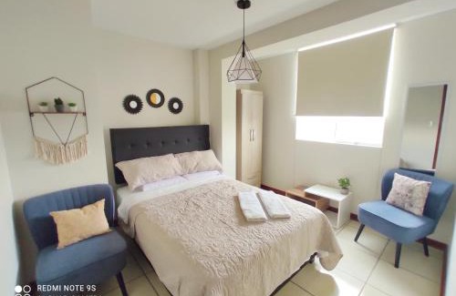 DEPARTAMENTO con BALCÓN DE 3 HABITACIONES CERCA DE TODO offers accommodations in Chiclayo, 1.8 miles from Estadio Elías Aguirre. Among the facilities at this property are a 24-hour front desk and full-day security, along with free Wifi throughout the property. The accommodation offers a concierge service and private check-in and check-out for guests. Offering a terrace and garden views, the spacious apartment includes 3 bedrooms, a living room, flat-screen TV, an equipped kitchen, and 2 bathrooms with an a bath or shower. Towels and bed linen are offered in the apartment. The property offers city views. An indoor play area is also available at the apartment, while guests can also relax in the garden. Capitan FAP Jose A Quinones Gonzales International Airport is 2.5 miles from the property.