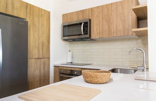 Nestled in Campeche, this 2-bedroom, 2-bathroom apartment brings it all within your reach. Fans of nature and the outdoors will love being 13 minutes by car from Bonita Beach and 26 minutes from Puyacán Beach. You'll easily make the 11-minute drive to CEDAR Sports Complex or the 10-minute drive to Malecón.