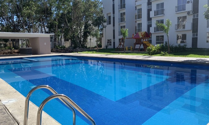 Yes, this Cancun apartment has a swimming pool. Check the Facility Overview section for details about the pool and other available facilities.
