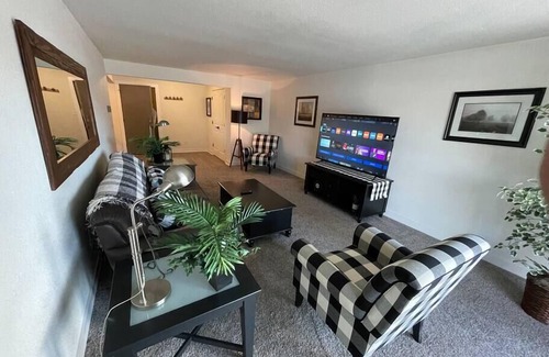 Alexander & Bishop Hospitality presents this spacious, stylish, and over 3× larger than a typical hotel room, this updated unit offers comfort and convenience with premium toiletries, coffee, a 65" HDTV, and fast Wi-Fi. Located near highways and shopping for easy access anywhere. 24/7 contactless, keyless check-in for a hassle-free stay.