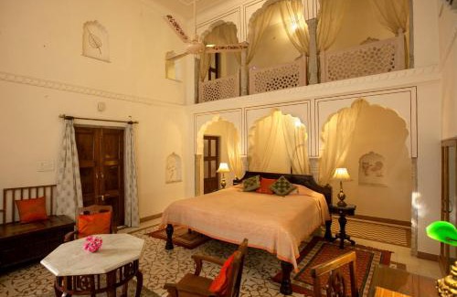 Located in Jaipur, 1.7 miles from City Palace, Dera Mandawa provides accommodations with a garden, free private parking, a shared lounge and a terrace. Featuring a restaurant, the 4-star hotel has air-conditioned rooms with free WiFi, each with a private bathroom. The property has room service, a 24-hour front desk and currency exchange for guests. At the hotel, every room is equipped with a deskand a patio with a city view. Guest rooms will provide guests with a closet and an electric tea pot. The area is popular for cycling, and car rental is available at Dera Mandawa. There's also a business center and a children's playground on site. Jantar Mantar is 1.8 miles from the accommodation, while Hawa Mahal – Palace of Winds is 1.9 miles away. Jaipur International Airport is 8.1 miles from the property.