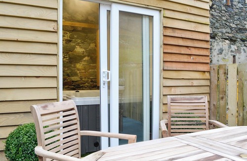 Perched on the lower slopes of Blencathra, you can relax in the hot tub and take in awe inspiring views up this stunning Lakeland Fell.. 2 steps to entrance.