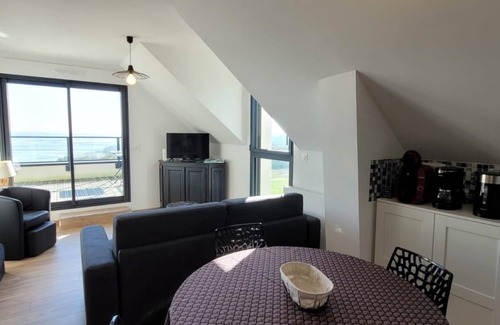 Your vacation rental with a beautiful sea view includes on the ground floor: entrance leading to a laundry area (with washing machine) shared with the owners. Floor: a corridor (not closed by a door) leading to a living room with kitchen, living room and lounge. A bedroom (1 double bed 140x190), bathroom with bath, wc. At your disposal: a private terrace of 30 m², a garden shared with the owners of 6000 m². Parking on the property, in the courtyard shared with the owners (200 m²) Fancy a break by the sea? The destination of your next vacation has been found! Book this apartment without further delay and come and live to the rhythm of the tides. What a pleasure to fall asleep facing the big blue or to relax on the terrace and contemplate this exceptional panorama... A change of scenery guaranteed! You won't want to leave the place, and yet... the region is so beautiful! Here all the pleasures of the coast await you! In terms of activities, you will have the choice between swimming, lazing on the beaches (les Nouëlles, St Laurent, les Rosaires, Martin plage) or water sports... The GR34 is on site, don't forget to survey it for beautiful hikes because you can admire postcard landscapes. Do not miss strolling along the port of Légué (4 km), with its quays lined with restaurants. Nearby: St Brieuc center (7 km) and the seaside resorts of Binic (14 km), St Quay Portrieux (21 km).