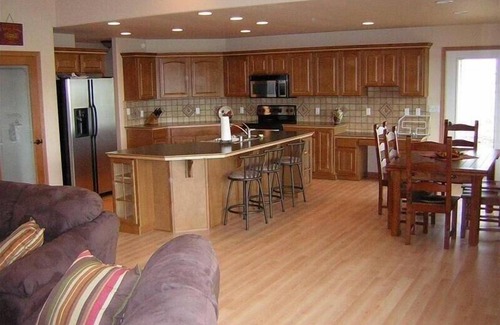 2 RV hook up's (1@30amp & 1@50amp) for $75/night OR park next door in the RV campground. Garage is equipped with a pool table (adults only), refrigerator/freezer and extra freezer.