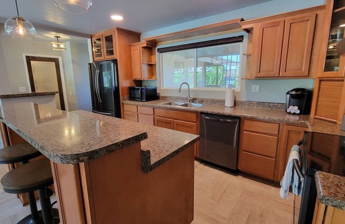 There is an attached studio (1 bed/1 bath) with Kitchenette (private entrance) ideal for larger parties looking to stay together in one place. Our studio is available below:
