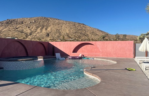 ***JUST ADDED NEW Pool & Spa: Dive into relaxation in our stunning new inground pool, surrounded by a beautiful pink stucco wall inspired by the vibrant aesthetics of Bali and Mexico. This backyard sanctuary features a luxurious spa where you can unwind after a day of adventure, all while soaking in the breathtaking views of the desert landscape. Whether you're floating in the pool or soaking in the spa, this space is designed for ultimate relaxation and rejuvenation.