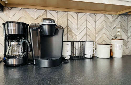 • Fully equipped kitchen with Keurig, drip coffee maker and blender