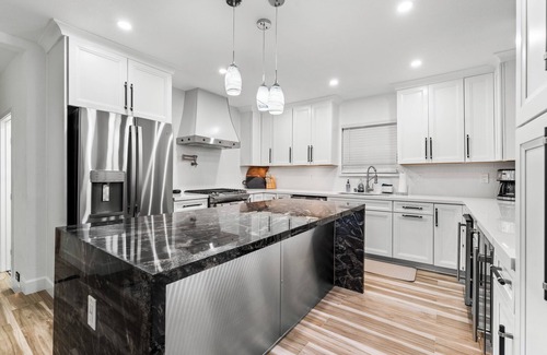Enjoy the pleasant amenities such as a stainless steel wine fridge, built-in icemaker, plus a dryer, and washing machine, AC, and WiFi.