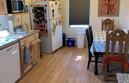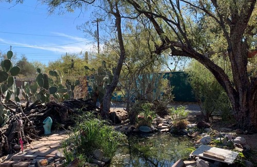 This house is small but has a sweet charm all its own. With 651 square feet of space, it is best appreciated by those of us who do not feel the need for big or fancy lodgings. It is a clean and cozy 1-bedroom, 1-bathroom house with a remodeled kitchen. You'll have the whole house and yard to yourself, so privacy and nature are plentiful here. The large yard is fully fenced and has great desert vegetation including Saguaro and Organ Pipe cactus. Sit beside our little pond on a cool evening and take in the sights, sounds and smells of the desert in our little slice of Tucson!