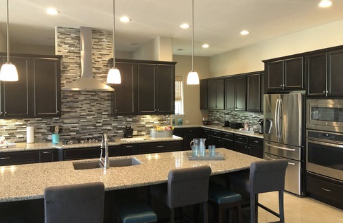 Comfortable great room with 75" Tv dining room with seating for 8, fully stocked kitchen with gas cooktop, oven, microwave and extra-large island, and separate wine frig. in butler pantry. Full sized poker table with chips and cards as well as games and puzzles to keep you entertained!