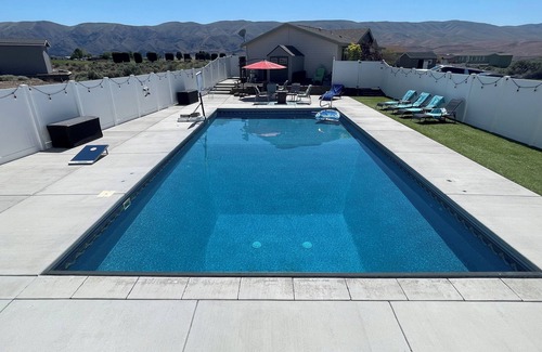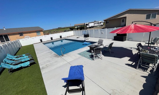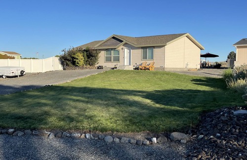 Come and play in the sun at Desert Oasis! The 3 bedroom/2 bath home includes your own private large heated swimming pool (20 X 40), back patio that looks at Hole 4/Tee 5 and a large grass area for lawn games. Located within the Desert Aire community - enjoy a boat launch, park for the kids, walking trails, airport and more! Only 2 hours from Seattle - we look forward to hosting you at the Desert Oasis!